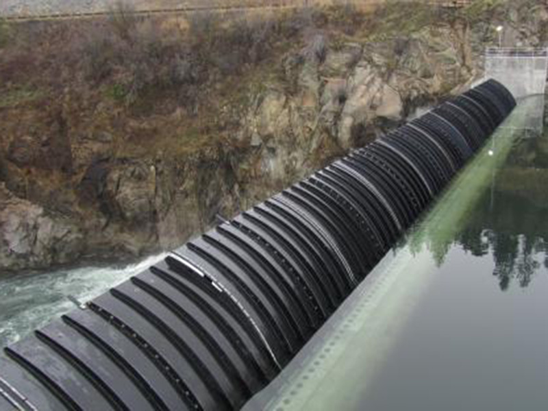 氣盾壩簡(jiǎn)介 氣盾壩,是一種新型的擋水結(jié)構(gòu),其兼具橡膠壩和鋼閘門(mén)的優(yōu)點(diǎn),剛?cè)岵?jì),該結(jié)構(gòu)由美國(guó)0HI公司于20世紀(jì)90年代研制而成.其結(jié)構(gòu)主要由盾板、充氣氣囊及控制系統(tǒng)等組成。利用充氣氣囊支撐盾板擋水,氣囊排氣后塌壩,氣囊臥于盾 板下,可避免河道砂石、冰凌等對(duì)壩袋的破壞;氣囊內(nèi)填充介質(zhì)為氣體,塌壩迅速:各個(gè)部件均為預(yù)制部件,安裝工期短;盾板及氣囊模塊化